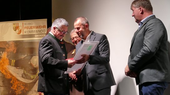 Große Florian-Ehrenmedaille in Bronze für die Firmen Schöfbenker Transporte und Prammerdorfer Kräne und Stahlbau